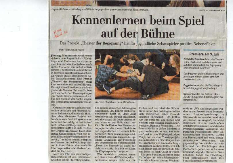 Zeitungsartikel Theater der Begegnung in Jüterbog 29. Juli 2016 1145 × 803 Du kannst mich kennenlernen – Theater der Begegnung in Jüterbog