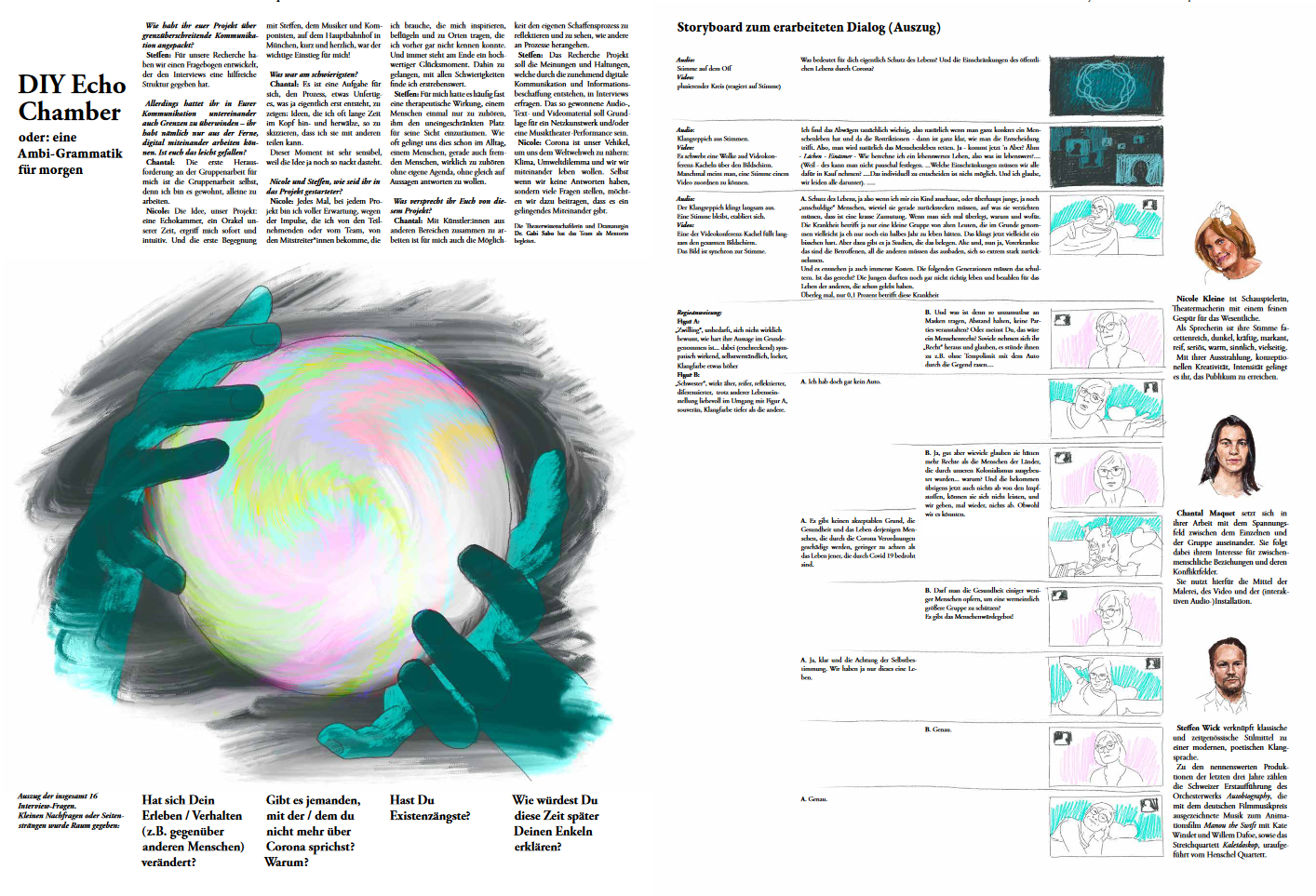 Das Recherchevorhaben „echo.kammer.spiel“ versteht sich als Fortsetzung der im Rahmen der #TakeCareResidenzen 2020/2021 durchgeführten Recherche „DIY Echo Chamber“.